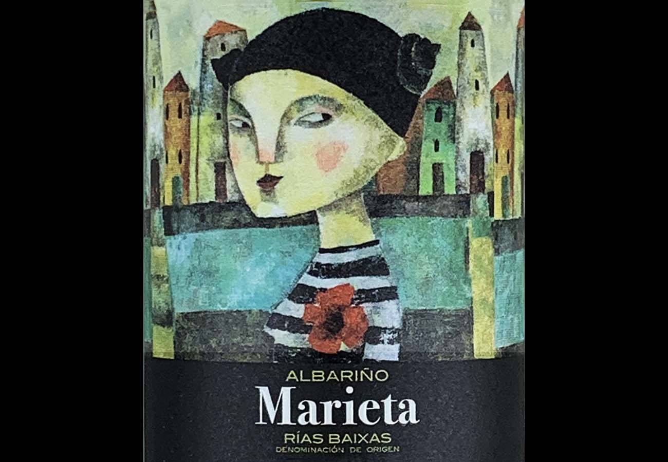 The Marieta Albariño wine label features a quaint piece of artwork bound to make connections. Using art on wine labels is a popular approach for good reason. It attracts attention. Art may be subjective but well-matched to the wine it establishes character before the bottle is even opened. If the consumer enjoys the wine as well, the whole experience is enhanced.