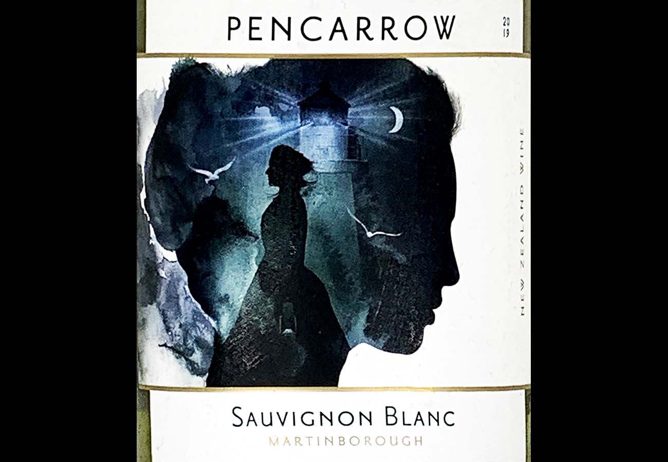 The watercolour illustration on the label of Pencarrow Sauvignon Blanc is strikingly dramatic. It is framed by the profile of a woman’s head. Under dark storm clouds, there is a lighthouse that shines desperately in the middle distance. It creates just enough light to highlight two seagulls in flight. A quarter moon barely pierces the night sky. In the foreground we encounter the woman again. This time in full figure, again in profile but facing the opposite direction. She may be holding a lantern but it is unlit. Her story is yours to author. But the mood is set.