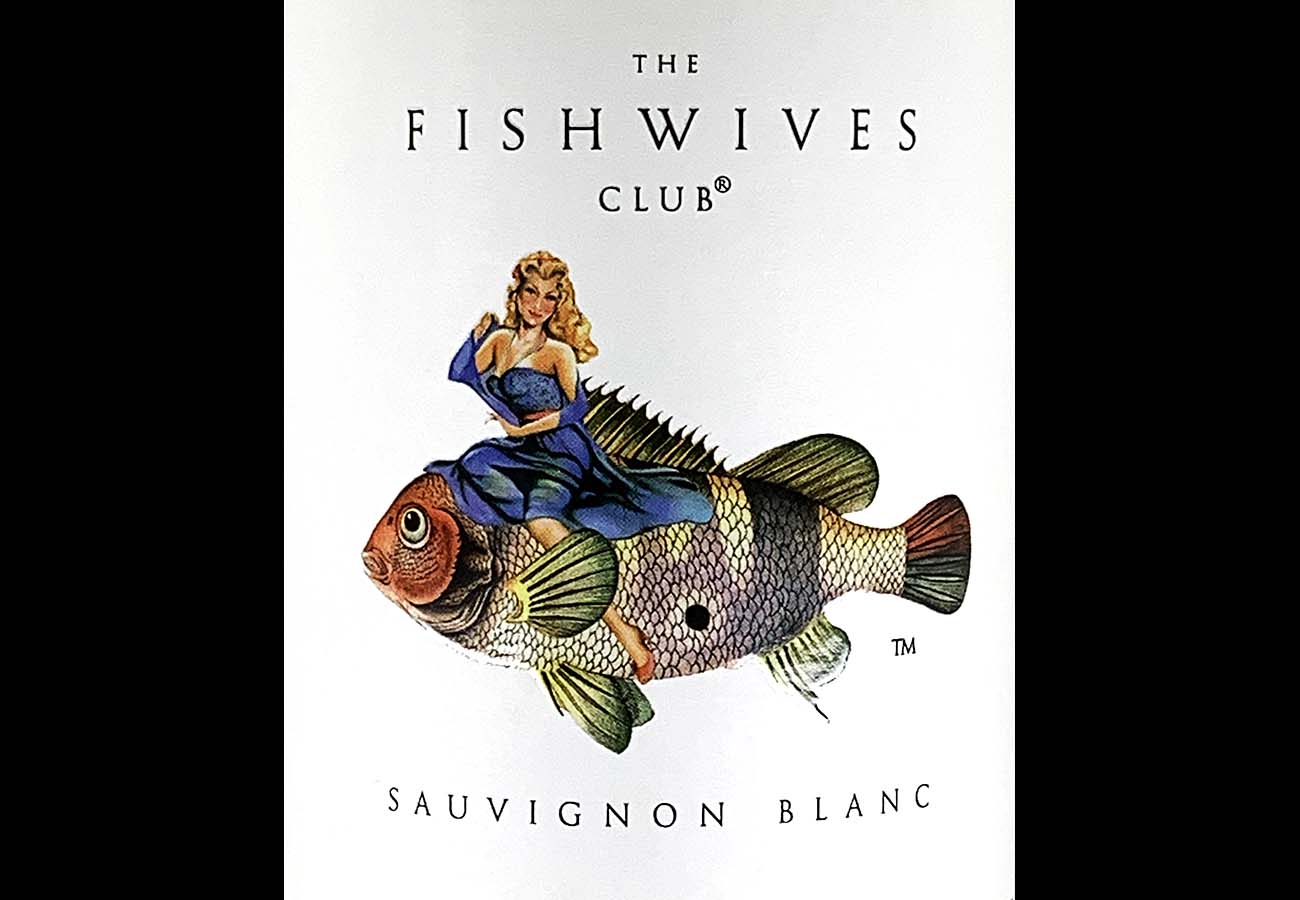 “Gosh! This is so interesting” That’s the headline on the back of The Fishwives Club Sauvignon Blanc label. The Toronto Star agrees. Their review headline? “A label with a woman on a fish? Hmmm” Description. “The label features a woman that looks like a 1950s pin-up girl — in a bustier, sheer blue skirt and coiffed hair — riding a fish four times her size. It’s a curious image — especially plastered on a wine label. But there it is.” Interesting indeed.